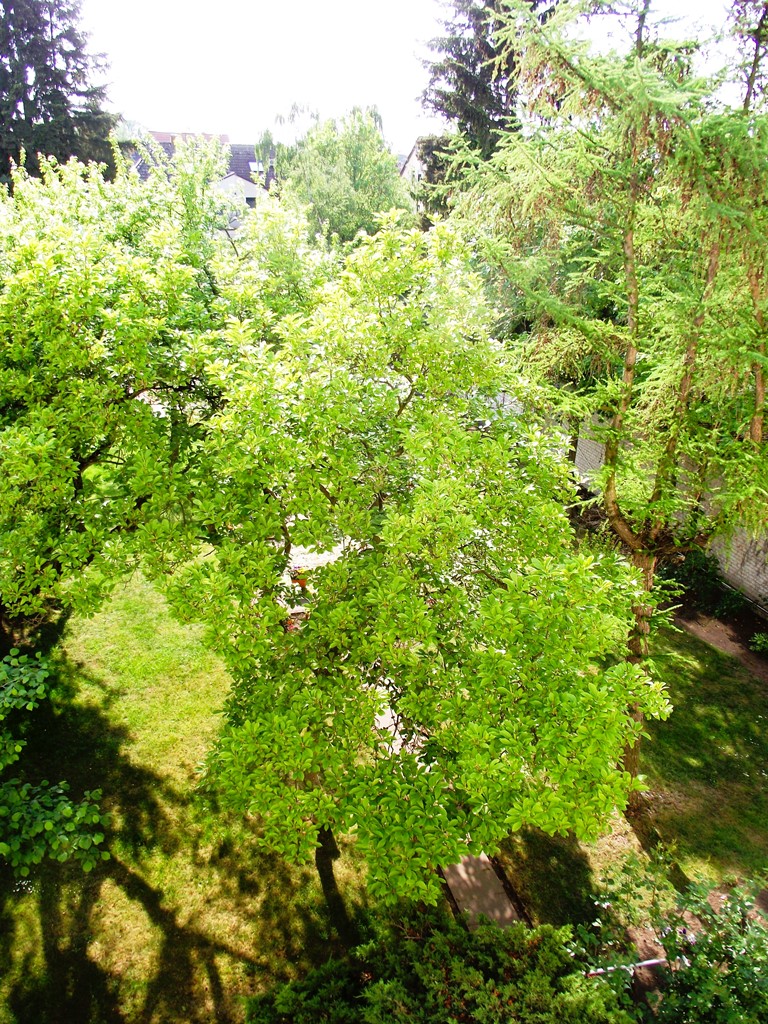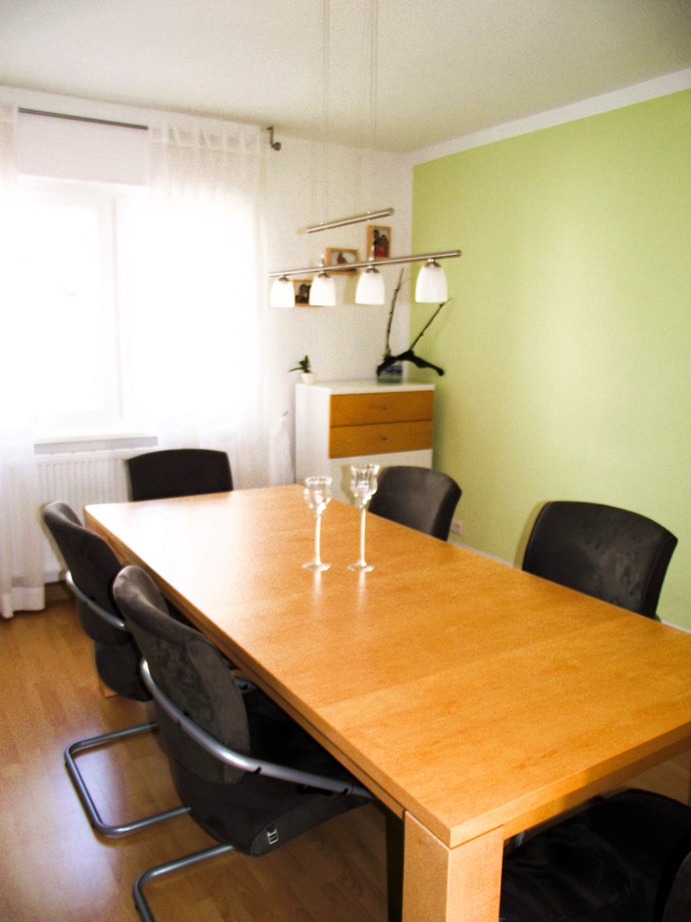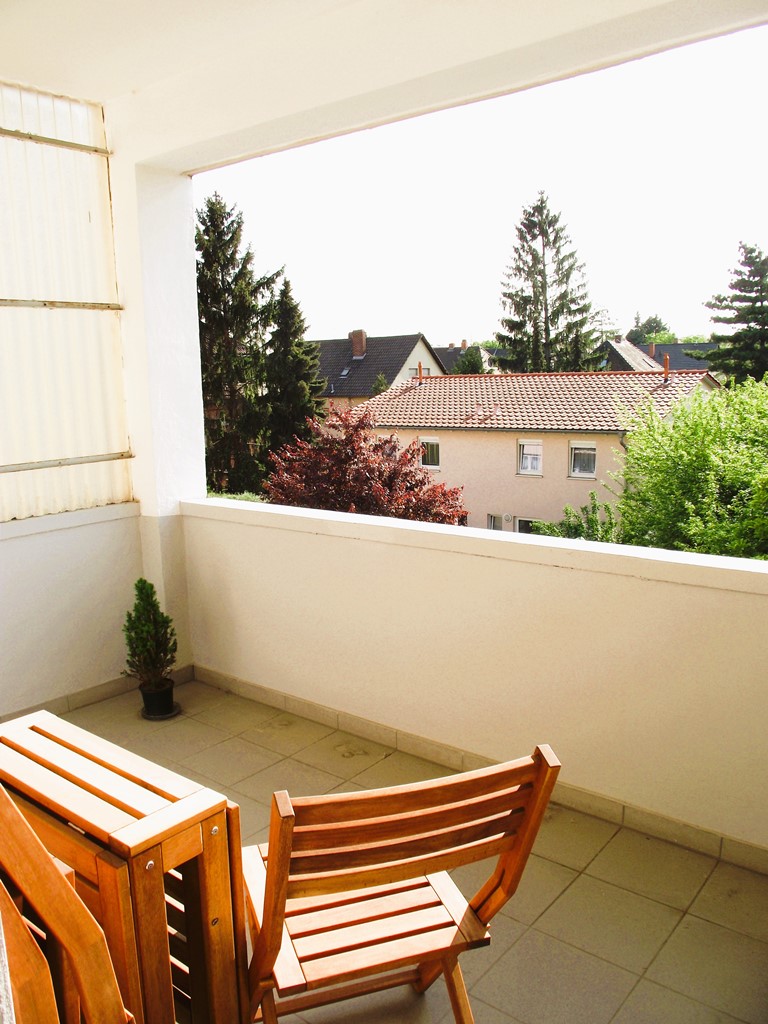Diese Wohnung besteht aus dem Wohnzimmer, dem Schlafzimmer, beide mit Zugang zum sonnigen Balkon und Blick in den schönen Garten, sowie der Küche mit anschließendem Esszimmer (Durchgangszimmer) und dem Tageslichtbad.