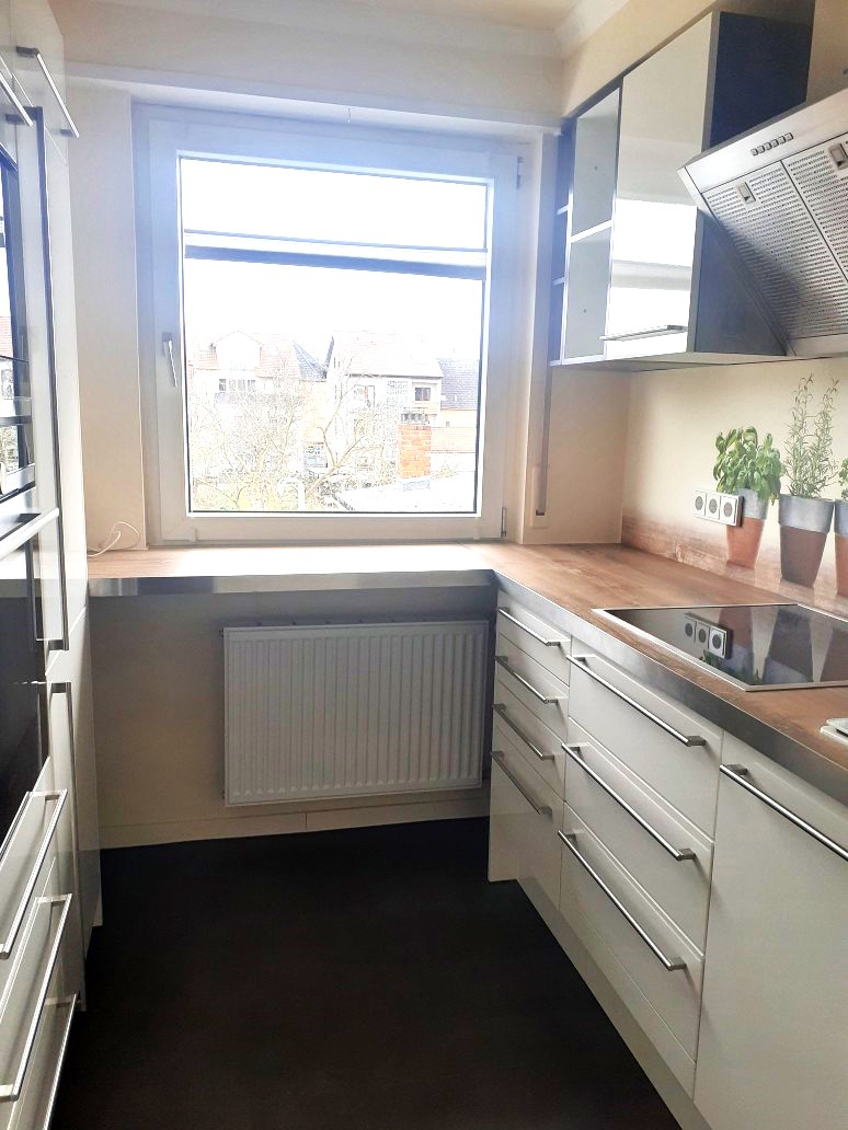 Die gesamte Wohnung ist frisch renoviert; Decken und Wände wurden neu gestrichen. Die Böden der Wohnung sind mit Echtholzparkett und Laminat belegt. Das Tageslichtbad verfügt über eine Wanne und eine Dusche. Es ist geschmackvoll und zeitlos gefliest. Die gepflegte und mit wertigen Markengeräten (Siemens) ausgestattete EBK ist Bestandteil dieser Wohnung. Zudem verfügt diese Wohnung über zwei Klimageräte. Das Haus wird mit einer Gaszentralheizung geheizt, die auch das Warmwasser generiert. Zur Wohnug gehört ein Kellerraum und im Haus steht Ihnen eine Waschraum zur Verfügung.